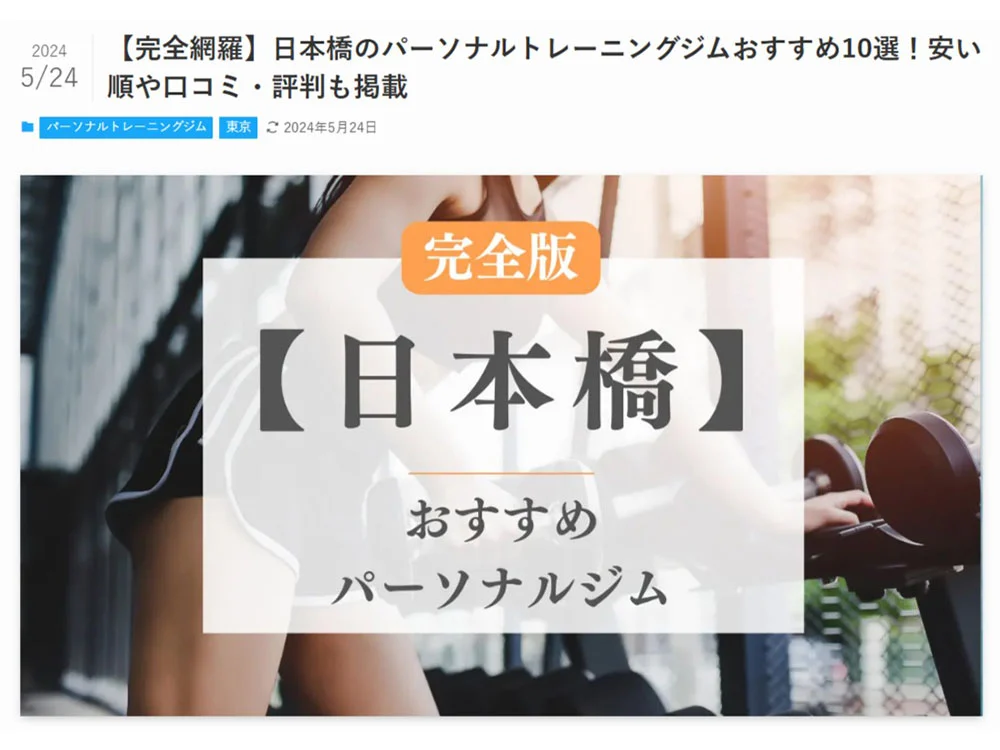 東日本橋店 が「 aumo」の記事に掲載されました。「東日本橋のおすすめパーソナルジム5選!初心者でも通いやすいジムを紹介」