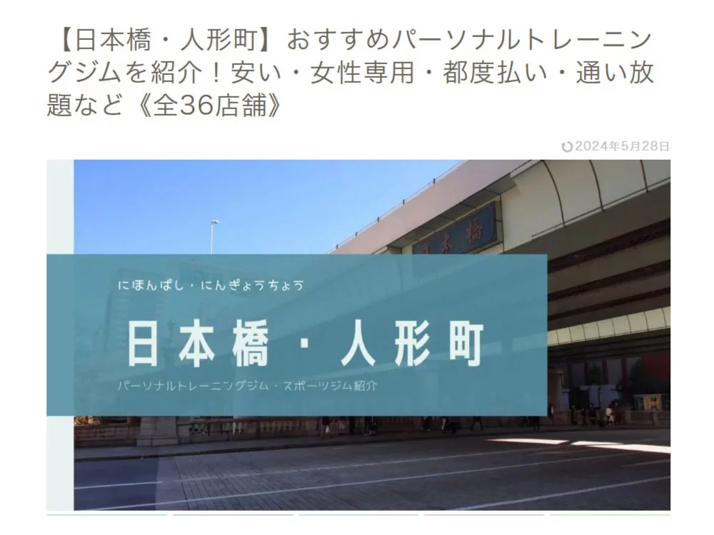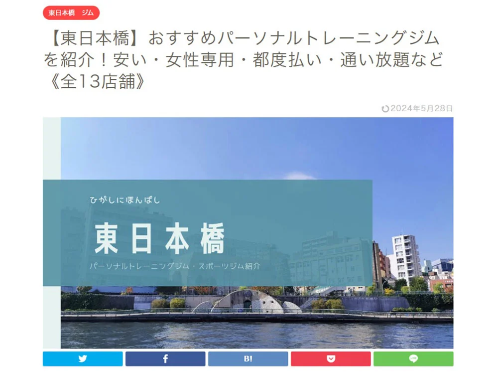 東日本橋が「 B-MAKE」の記事に掲載されました。「【東日本橋】おすすめパーソナルトレーニングジムを紹介!安い・女性専用・都度払い・通い放題など《全13店舗》」