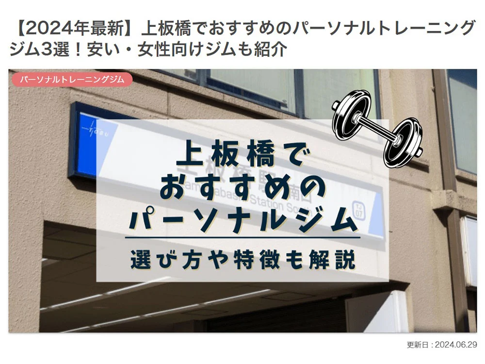 上板橋店の記事が掲載されました。「【安い】上板橋パーソナルトレーニングジム個室おすすめランキングTOP10を解説」