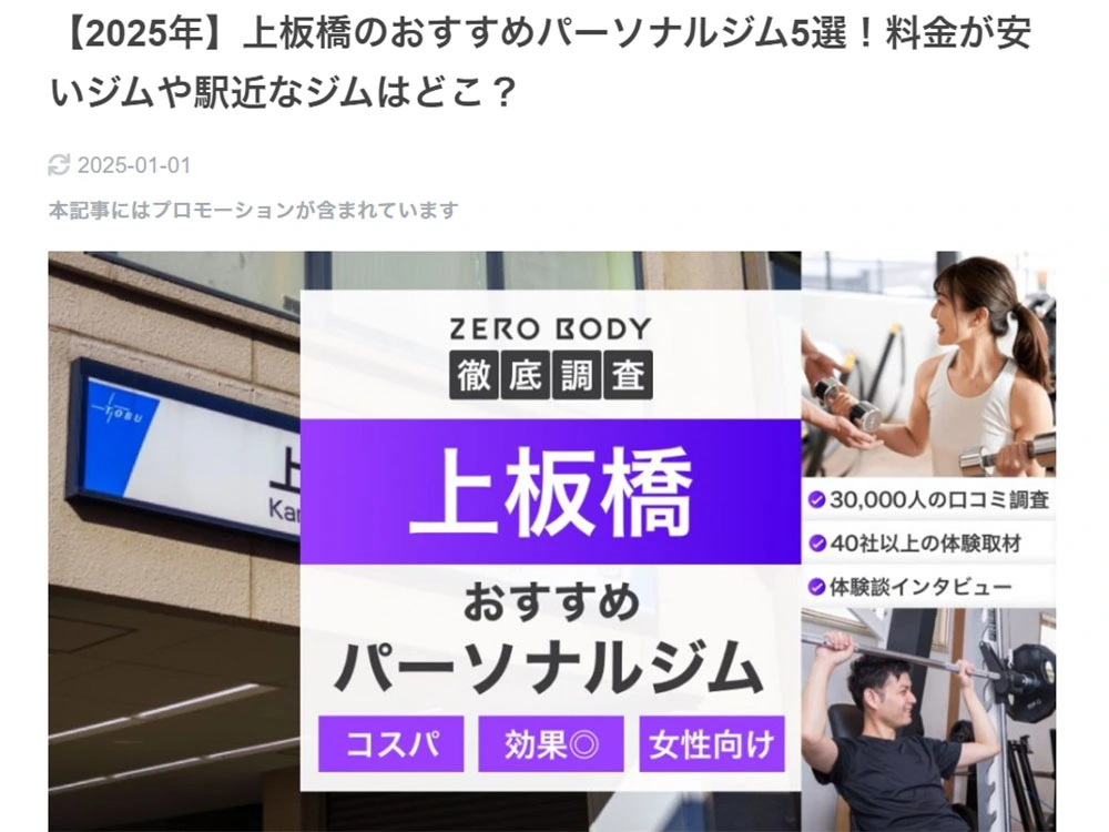 GOODLIFE GYM 上板橋店が「zerobody」の記事 「【2025年】上板橋のおすすめパーソナルジム5選!料金が安いジムや駅近なジムはどこ?」に掲載されました。。 -