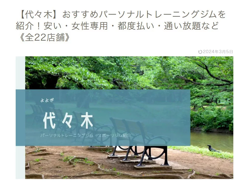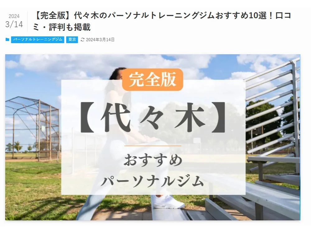 代々木店が「パーソナルジムJP 」の記事に掲載されました。「【2022最新版】代々木のおすすめパーソナルジム特集」