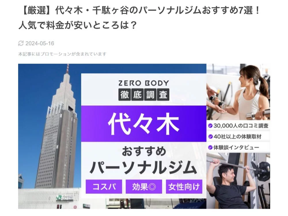 代々木店が「ZERO BODY」の記事に掲載されました。「 【厳選】代々木・千駄ヶ谷のパーソナルジムおすすめ9選!人気で料金が安いところは?」