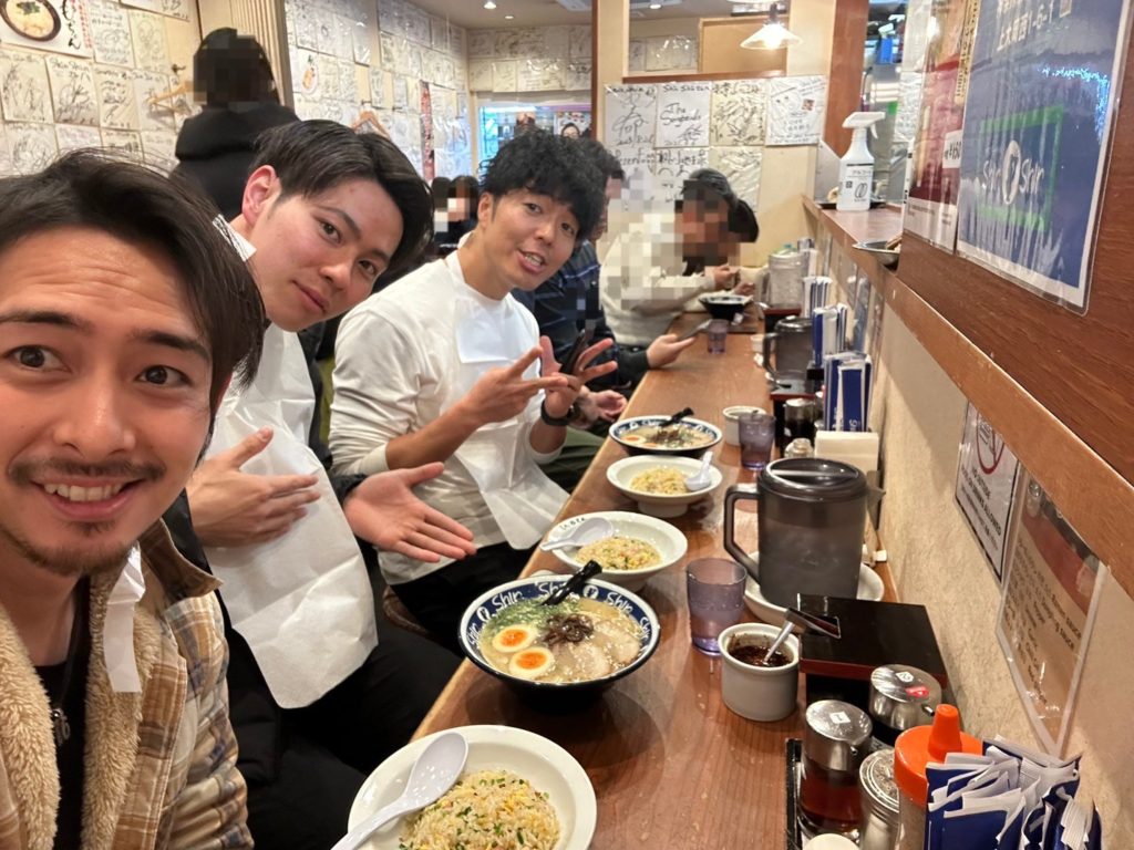 腹が減っては研修もできない! 先ずは現地にて福岡エリアのトレーナーと合流し、福岡グルメを堪能。