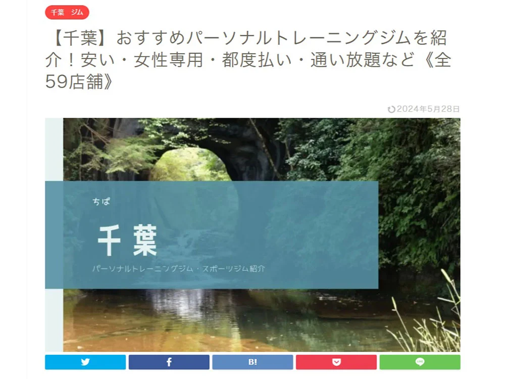 稲毛海岸店が「 B-MAKE」の記事」に掲載されました。「【千葉】おすすめパーソナルトレーニングジムを紹介!安い・女性専用・都度払い・通い放題など《全59店舗》」