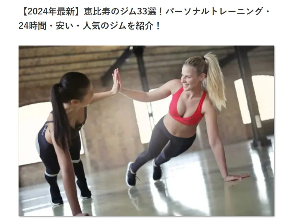 prime恵比寿広尾店が「 IDEAL」に掲載されました。「【2023年最新版】恵比寿のジムおすすめ31選!24時間・パーソナルジム・プール・人気のピラティスも紹介!」