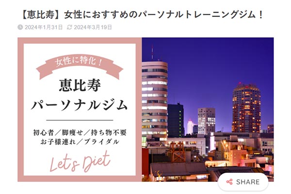 prime恵比寿広尾店が「【恵比寿】女性におすすめのパーソナルトレーニングジム!」に掲載されました。