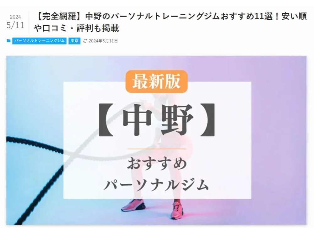 中野野方が「 LYFT OFF 」の記事に掲載されました。「【厳選】中野のパーソナルトレーニングジムおすすめ8選|女性に評判&安い料金」