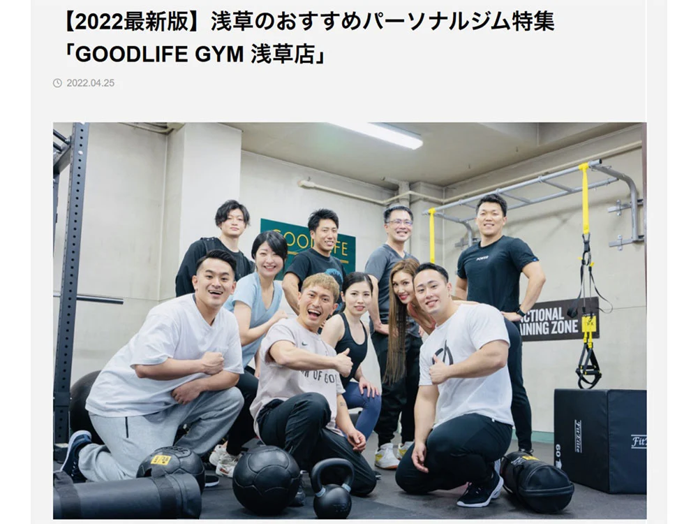 GOODLIFE GYM 浅草店が「パーソナルジムJP 」の記事「【2022最新版】浅草のおすすめパーソナルジム特集」に掲載されました。